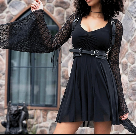 BLACKMILK RARE Spectre Style Dress with Lace Bell Sleeves - M