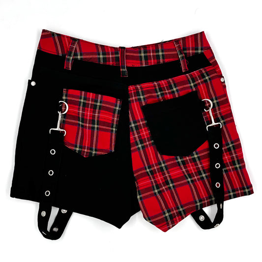 Banned Apparel Black and Plaid Suspender Shorts - XS