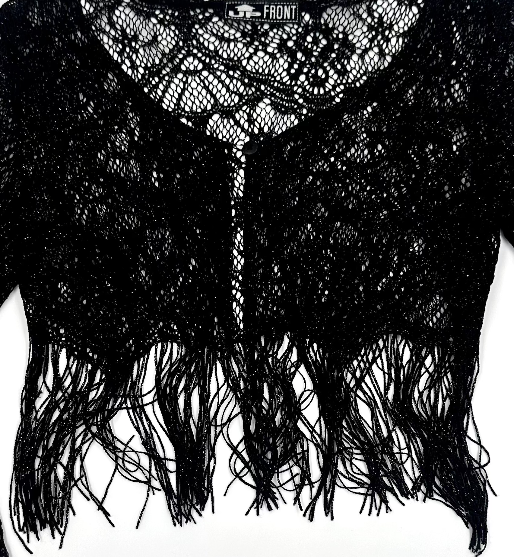 Vintage 90s Black Shimmer Fringed Lace Cardigan
